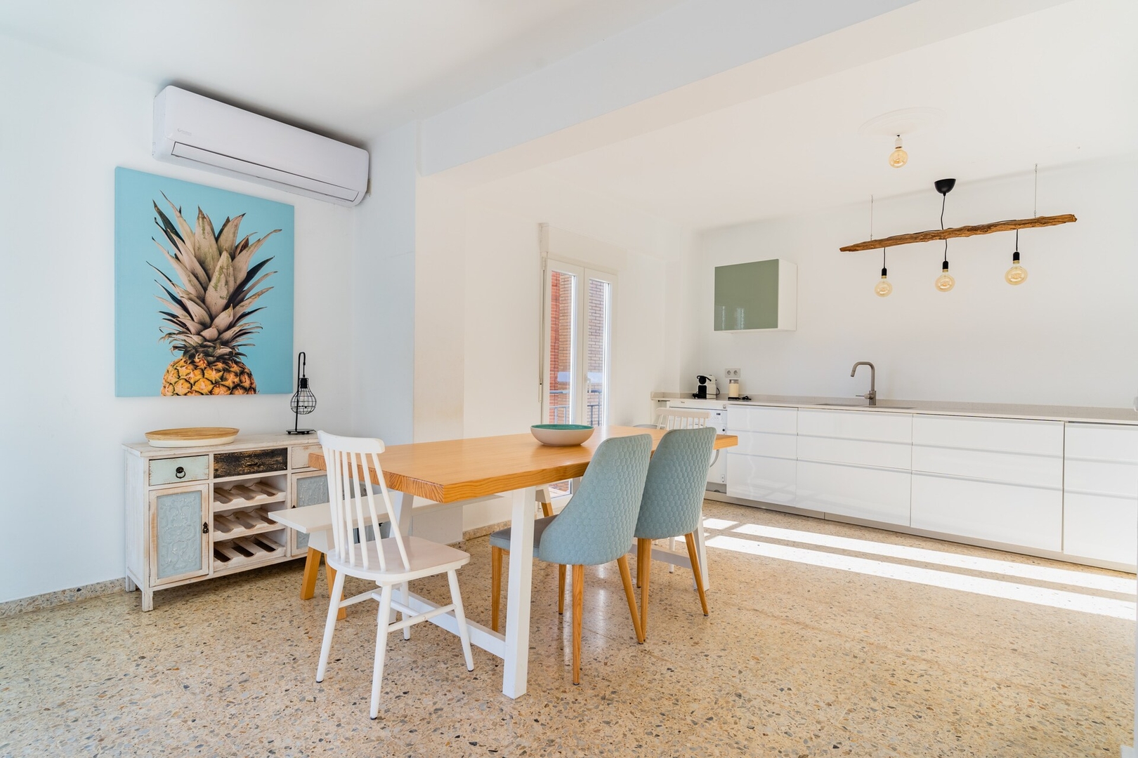 Cabalicious Flat-big families by Invalencia is a spacious and bright apartment in Valencia’s character-filled Cabañal neighborhood, located just 500 meters from the beach and port and close to local shops, the lively market, wine cellars, bars, and traditional restaurants. Designed with a fresh Nordic style, the apartment offers a large open-plan living room and fully equipped kitchen, plenty of natural light, two French balconies, air conditioning, and everything needed for a comfortable group stay. Ideal for up to 7 guests, it features 4 bedrooms and 2.5 bathrooms, making it a great option for big families or groups looking to enjoy both the beach and a more authentic side of Valencia.