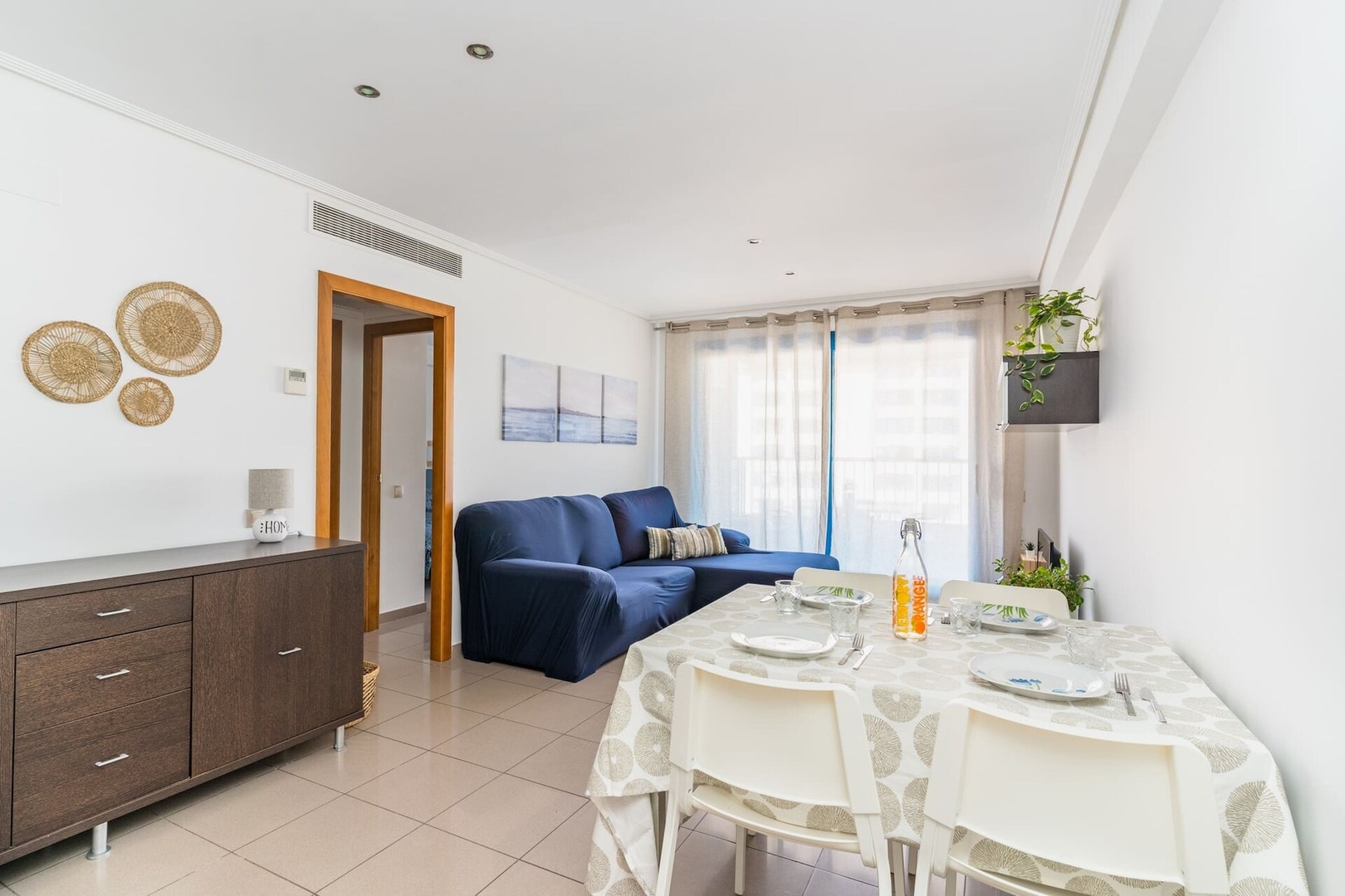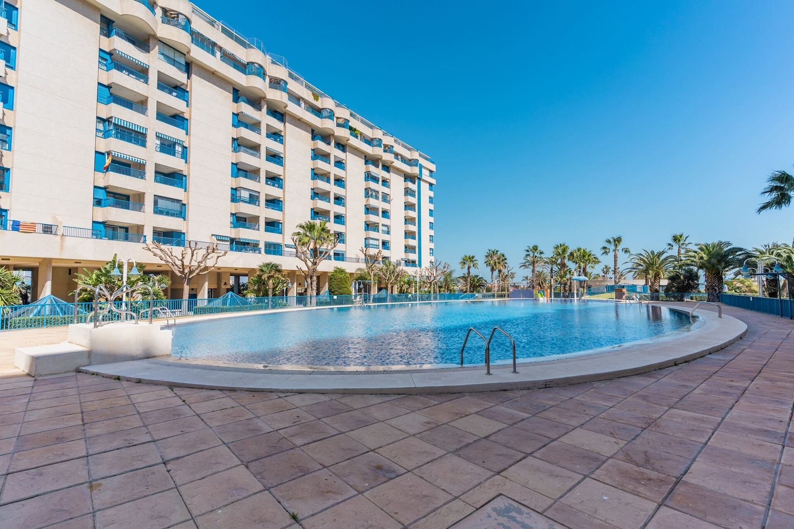 Patacona Beach Resort by Invalencia is a fantastic beachfront apartment in Alboraya, set directly in front of Patacona Beach and ideal for families or two couples looking for a relaxing coastal stay. With beautiful sea views from the terrace, this first-line beach apartment is located in a complete residential complex with private parking, two swimming pools, a social club, restaurant, mini golf, tennis and paddle courts, a children’s park, and pleasant common areas for walking. Designed for up to 4 guests, it features 2 bedrooms, 4 beds, and 1 bathroom, along with an independent kitchen, laundry space, air conditioning, Wi-Fi, elevator access, and a bright living area opening onto an outstanding terrace facing the Mediterranean Sea.